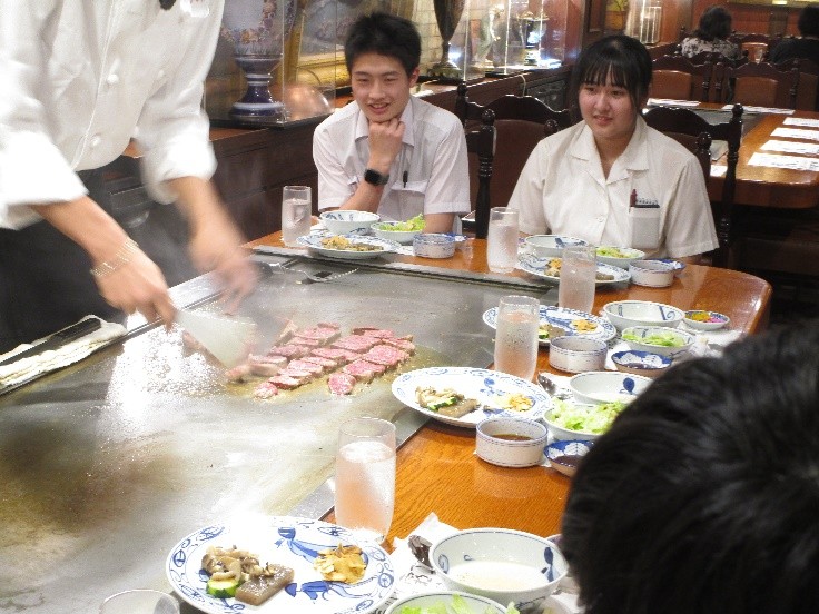 2日目夕食では、目の前で焼かれる肉に釘付け