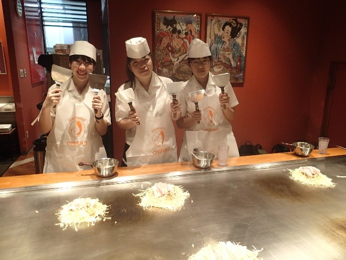 お好み焼作り体験。きれいな形にするのが難しかったようです